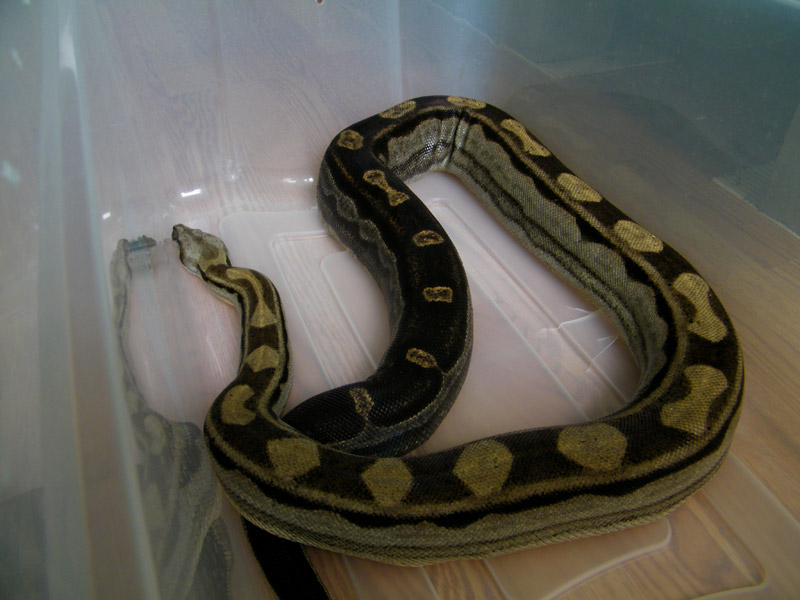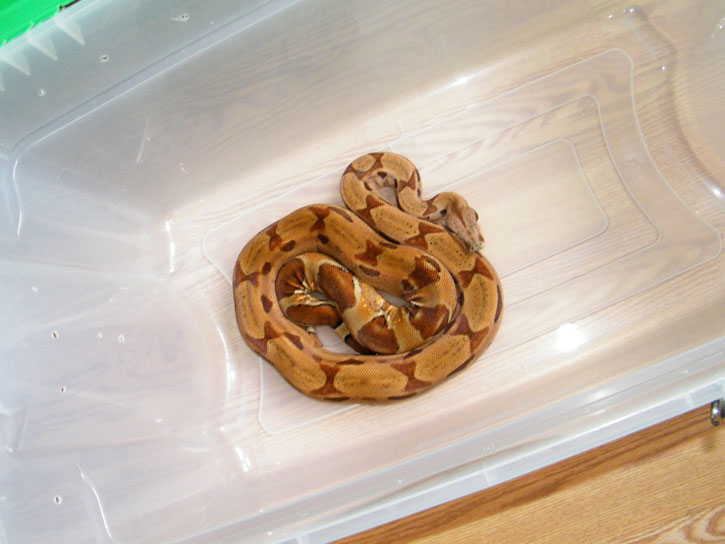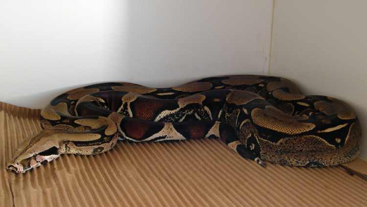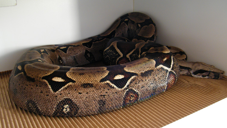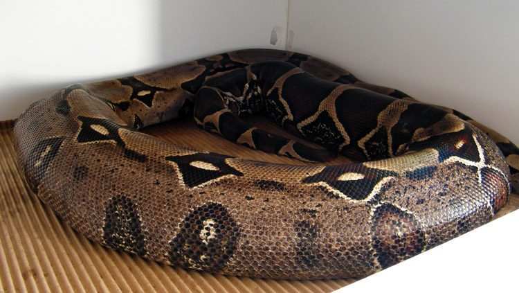 Boa constrictor constrictor du Suriname (BCC), femelle importée en juin 2001 lorsqu’elle était bébé. S'est reproduite avec succès en octobre 2008 avec un mâle né en captivité. |