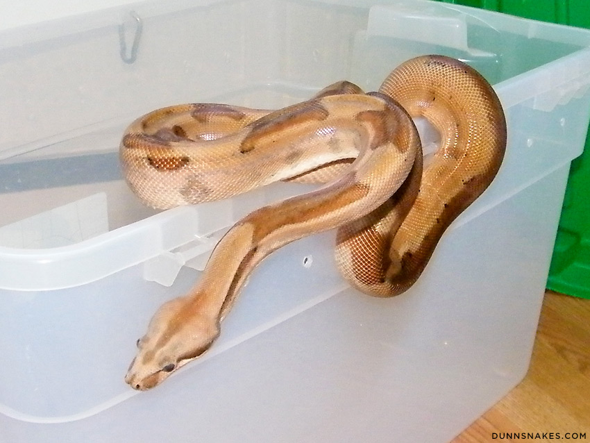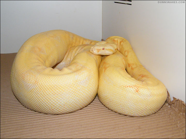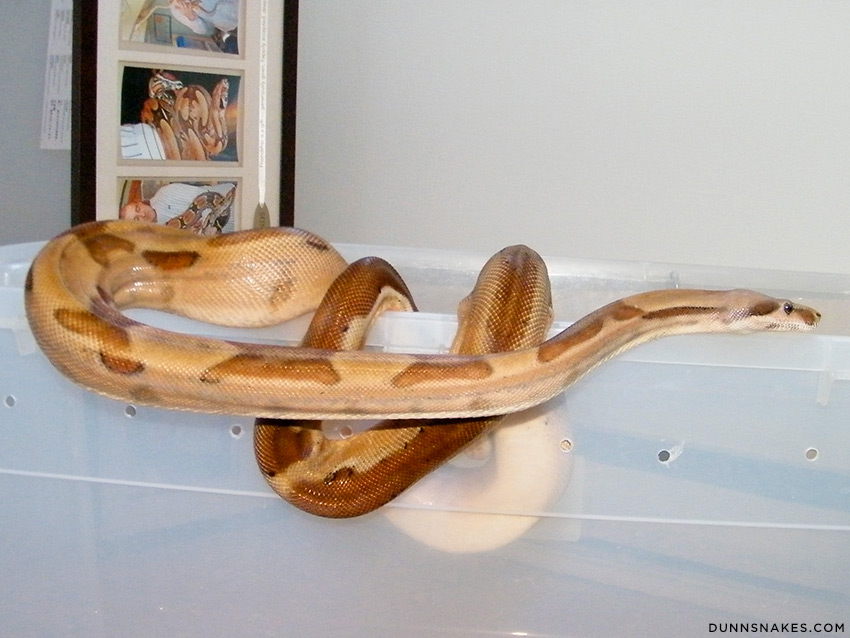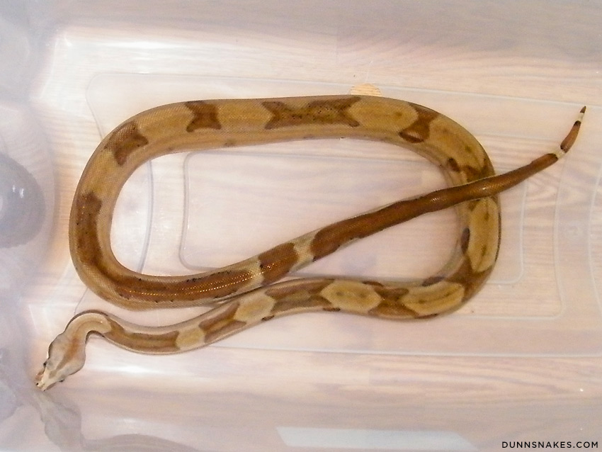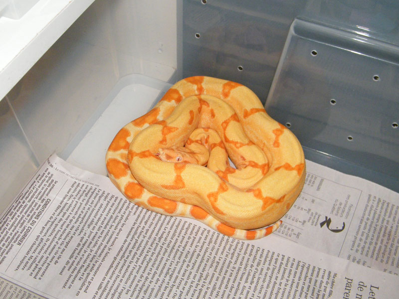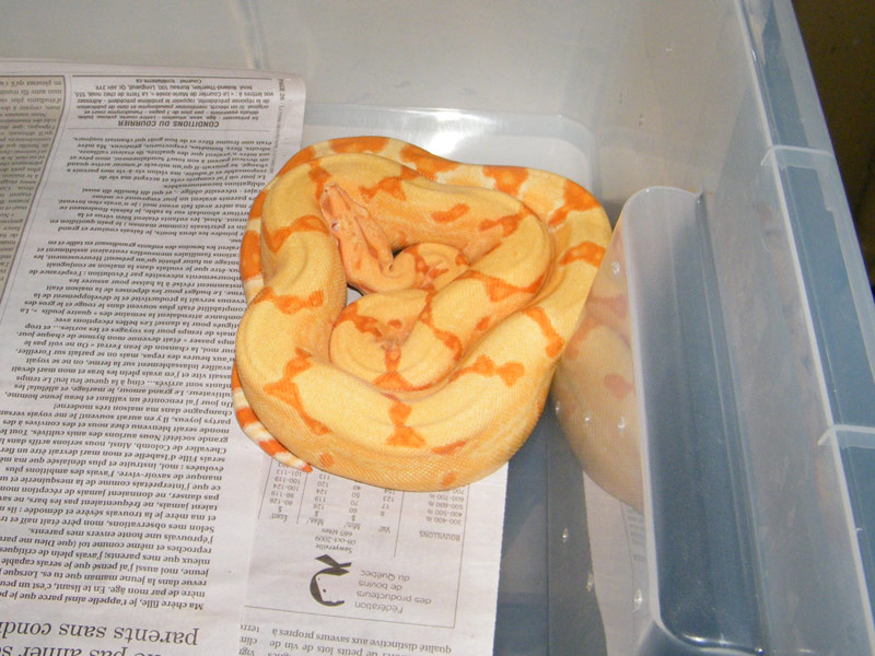 Boa constrictor sunglow, femelle née le 13 mai 2010, provient d'une mère albino et d'un père hypo het. albino. |