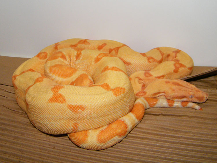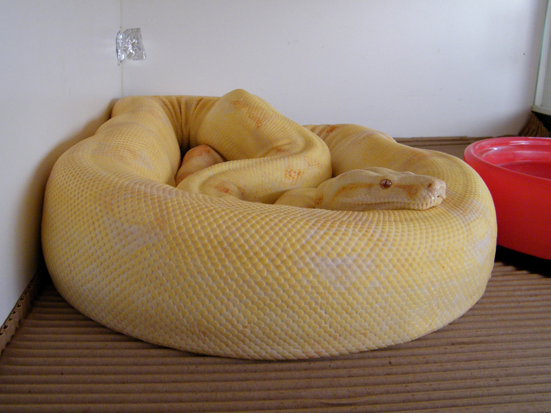 Boa constrictor albino, lignée Kahl. Femelle née en 2006, provenance inconnue. Reproduite avec succès en 2010 et 2011 avec un mâle hypomélanique het. albino. |