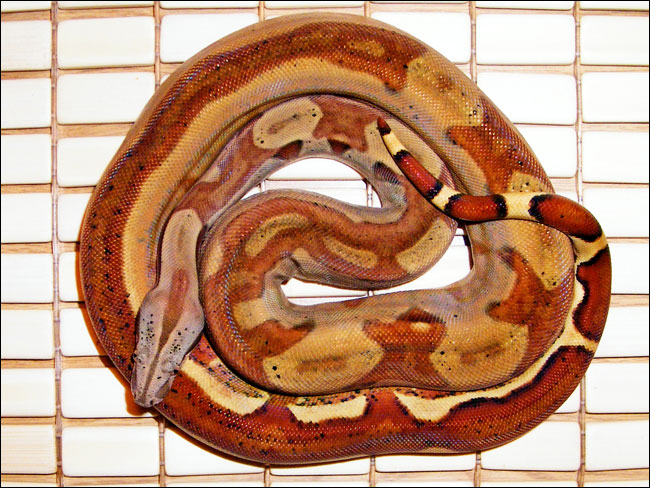 Boa constrictor constrictor du Suriname (BCC), mâle né le 5 octobre 2008. Belle aberrance. |