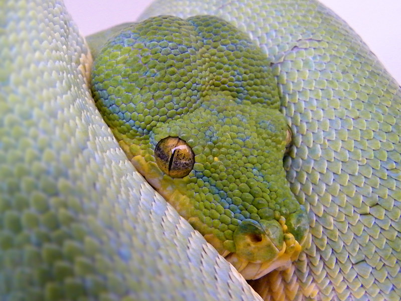 Python vert, type Sorong. Femelle née en 2003. Elle a eue 14 oeufs en 2007 avec son ancien propriétaire. Aucun projet n'est prévu avec elle à court terme. |